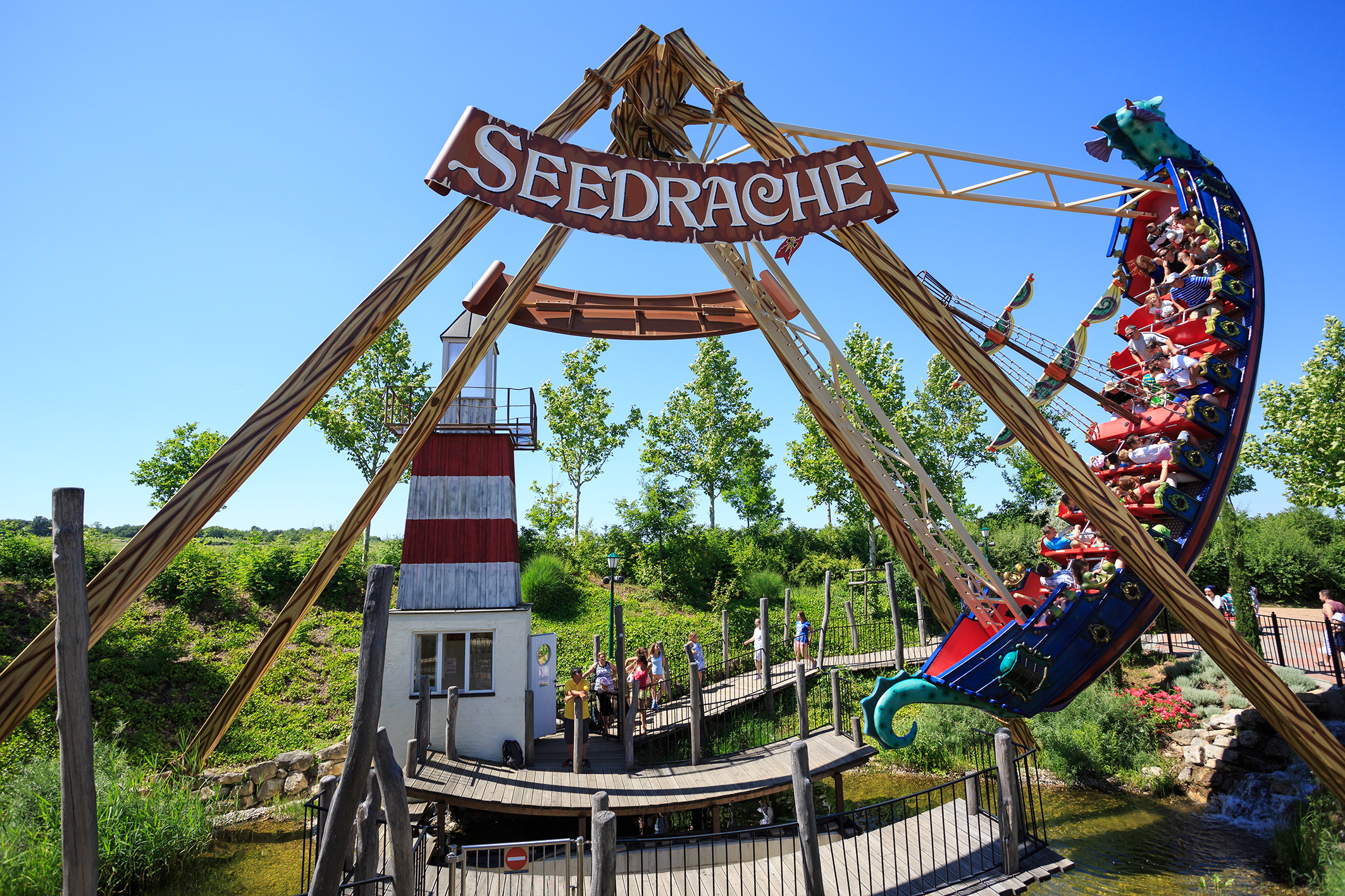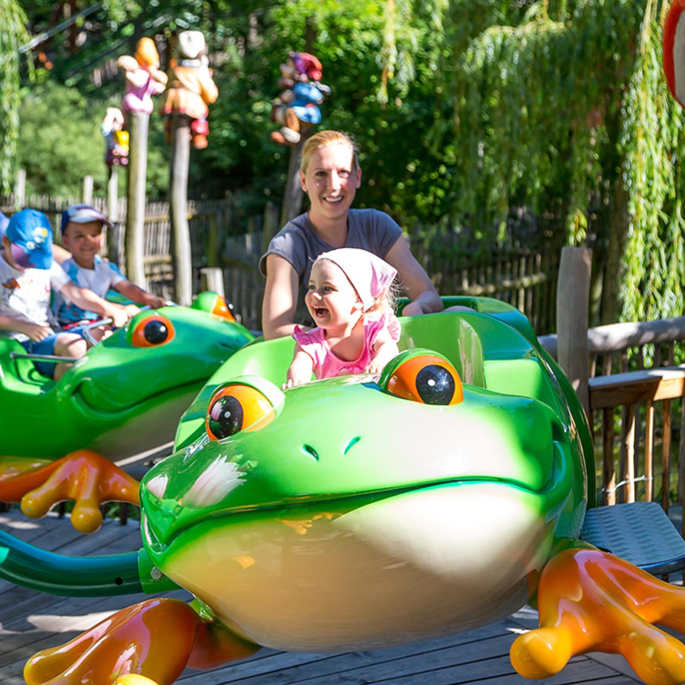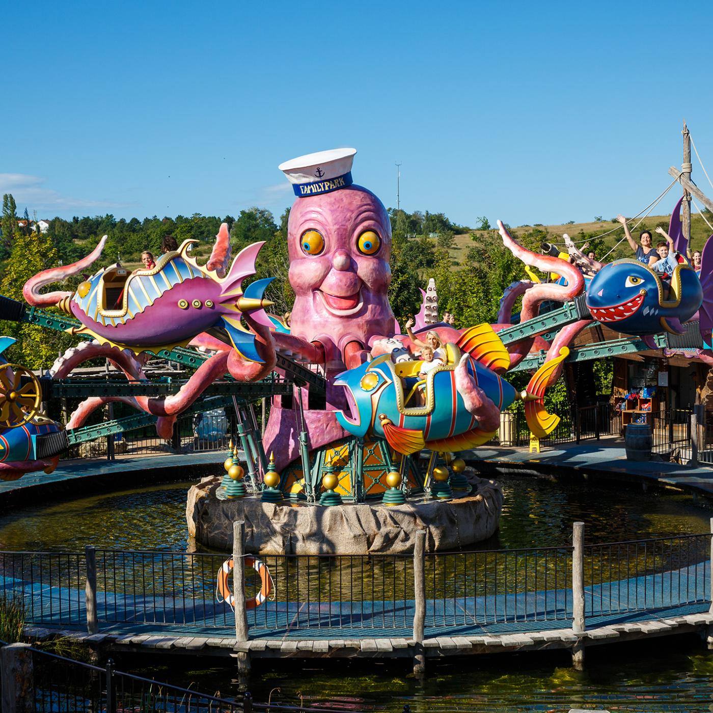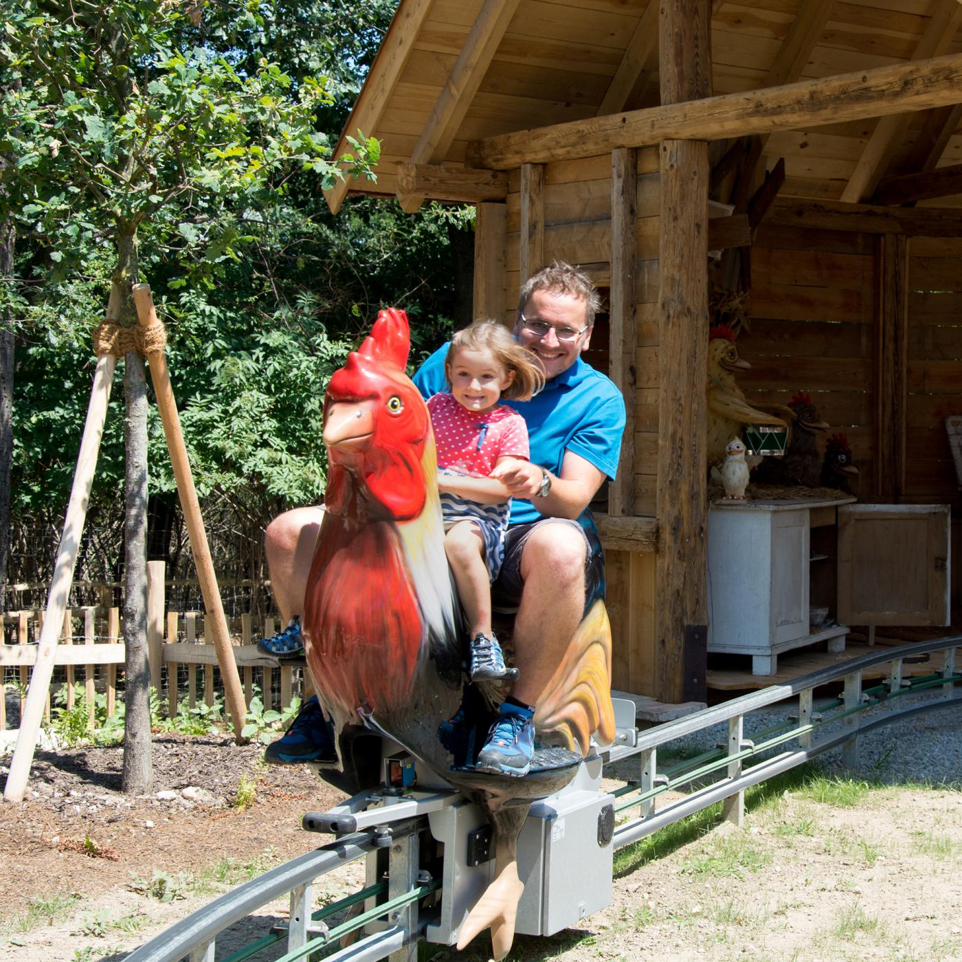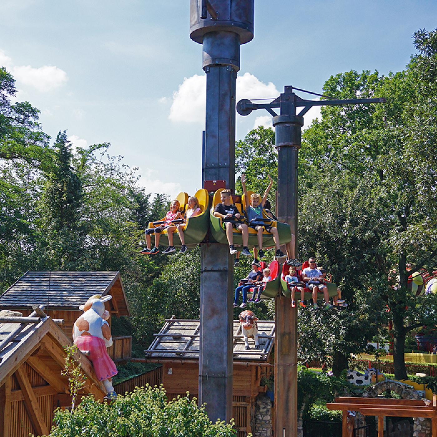 29 Fahrattraktionen versprechen jede Menge Spaß! Wagt eine Fahrt mit der Achterbahn Götterblitz oder tuckert gemütlich mit der Traktorbahn über den Bauernhof. Bei den Freifalltürmen Almjodler lernt ihr das Jodeln, und bei Leonardos Flugmaschine das Fliegen. Wenn es heiß ist, kühlen euch unsere Wasserattraktionen wie die Krokobahn oder die Fliegenden Fische ab. Zusätzlich zu den Fahrattraktionen bietet der Familypark noch zahlreiche weitere Abenteuer, wie Erlebnis- und Wasserspielplätze, Klettergärten, Musiktheater und Mitmachspiele, bei denen es viel zu entdecken gibt.