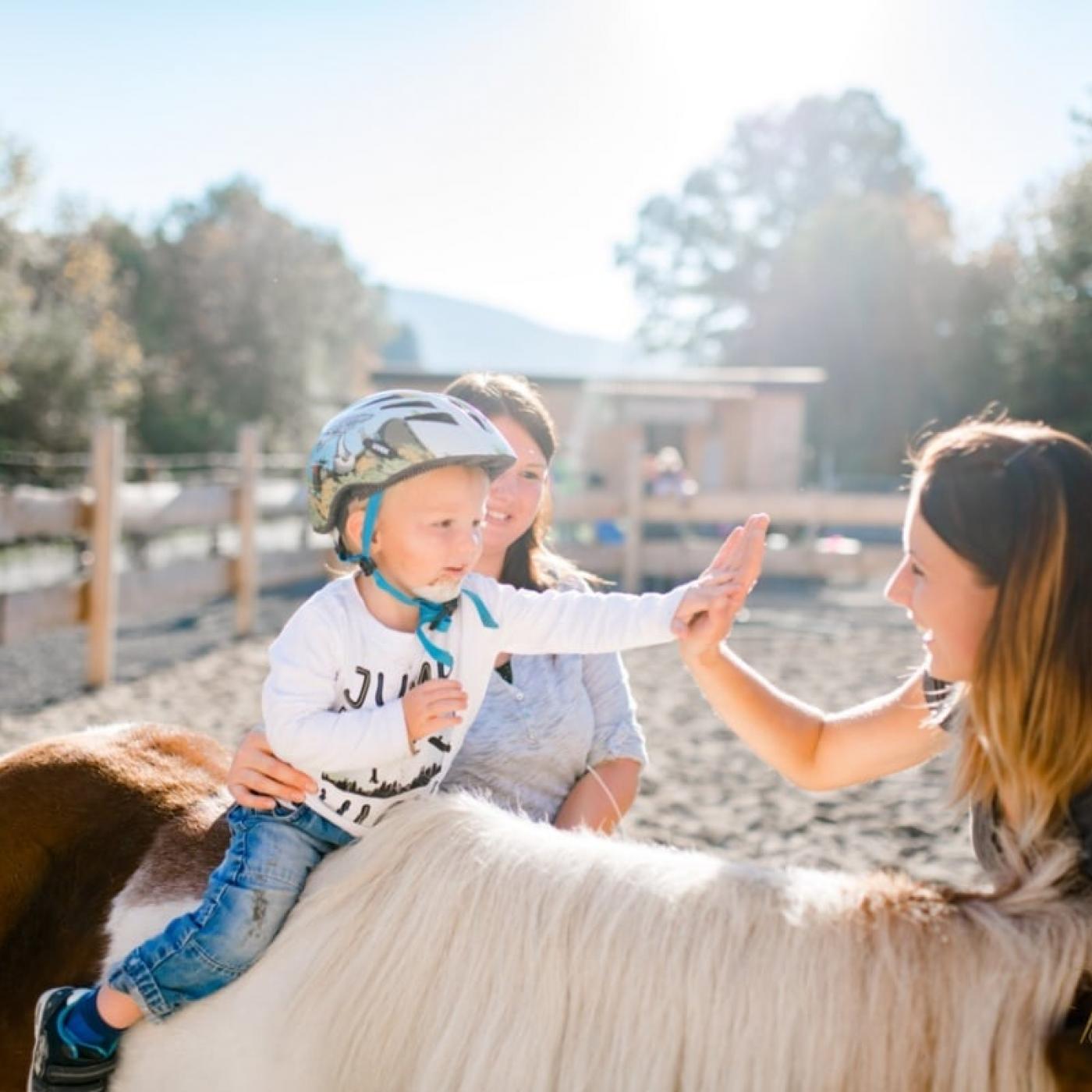 - Familien-Erlebnis-Gruppen mit den Kleinsten mit Aspekten der Tiergestützen Pädagogik. Bei all diesen Angeboten werden die Tieres des Hofes miteinbezogen. In diesen Gruppen wird nicht nur die Mutter-Kind-Bindung gestärkt, sondern es werden auch viele Erfahrungen gesammelt: Tiere erkunden, viel Lachen, Spiele in der Natur, basteln, malen, zusammen jausnen, und ganz viel mehr! Für Kinder ab ca. 20 Monaten